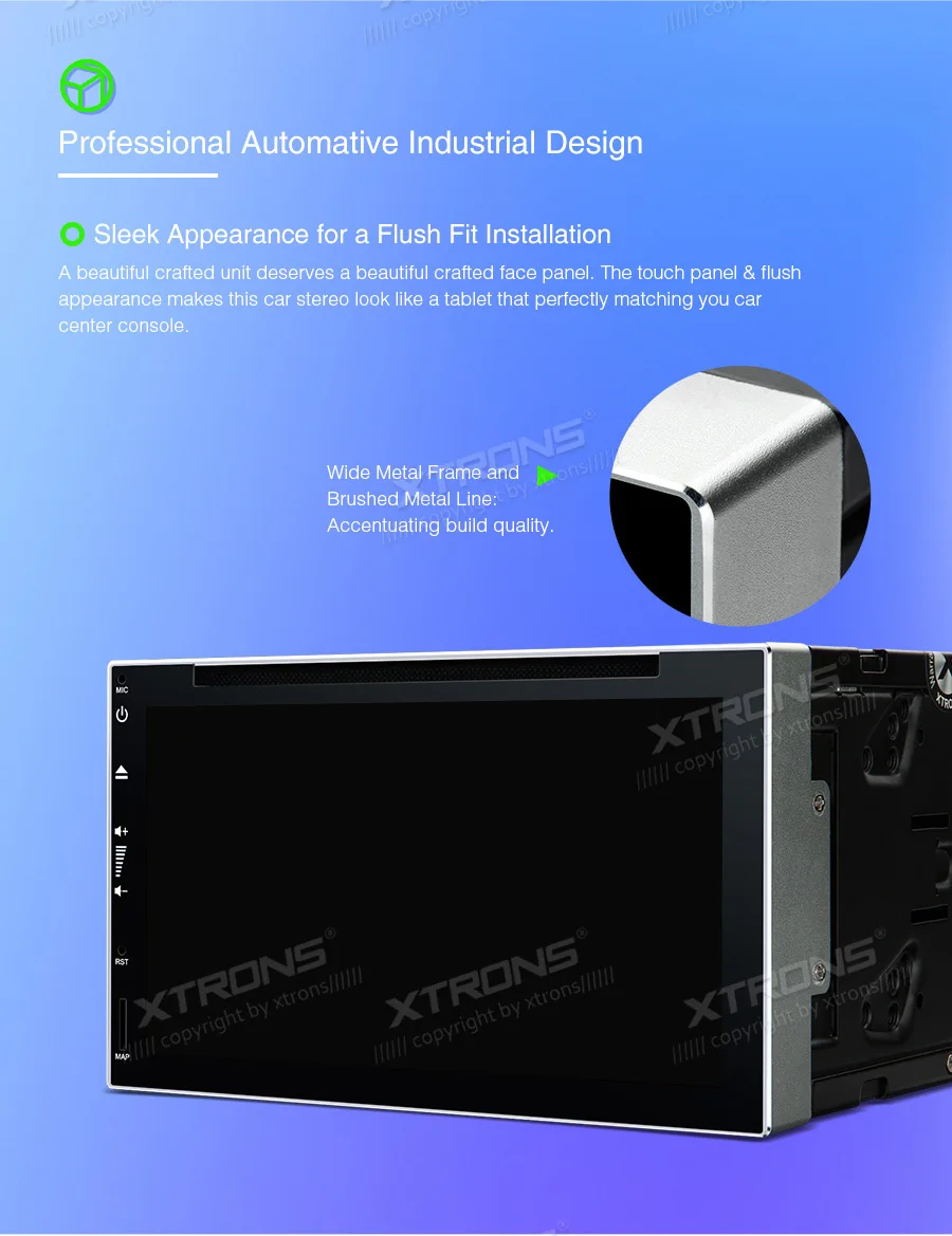 XTRONS6.95'' Car Multimedia DVD Player with GPS Support Car AutoPlay •Prefessional Automative Industrial Design Sleek Appearance for a Flush Fit Installation A beautiful crafted unit deserves a beautiful crafted face panel. The touch panel & flush apperance makes this car stereo look like a tablet taht perfectly matching your car center console. Wide Metal Frame and Brushed Metal Line: Accentuating build quality. Skilfully Crafted Design The TE699IP has been designed without the use of plastic material for its main body and frame. The balck frosted metal body is both durable and oozes quality, whilst the brushed black frame exposes a metal line emphasising further the quality of materials used and gives the unit an added luxurious feel. Frosted Metal Material: Rust-proof and scratch-resistant, strong and durable. Android 9 Pie Finally Hit the XTRONS PX5 Series Powered by Android Pie, it offers more features than ever on the fastest and smoothest version and adapts to the way you use Android device. Performance Keeps Up With You The resourceful Octa-Core 64bit computing processor enables the XTRONS units to carry out more advanced tasks and makes them more capable and efficient. More RAM Means More Possibilities No more worry about glitches or slowing down the device when launching the apps. Equipped with 4GB RAM to boost performance, it gives you a truly fast & smooth experience and let you blast through different tasks. A Smart Way to Use Your iPhone in the Car Simply connect the XTRONS CP01 to your head unit and be amazed on how incredibly intuitive it becomes to play your iPhone onto its screen. Via the inbuilt zLink technology and its voice control function, everything is designed to bring the best out of your iPhone and establish a close connection with the head unit. The CP01 does not support Android phone. The CP01 supports iPhone 6 and later models with iOS 10 and later versions. The CP01 only works with XTRONS PA, PB, PE and PQ series unit running Android 8.0/8.1 and above. Note: The CP01 is not included. Need it, inquire with us now! •Max out Entertainment in Your Journey Screen Mirroring Function Screen mirroring allows you to mirror your phone's screen on this unit. You can choose to read messages or watch videos directly on the screen of this head unit instead of on your phone. Just connect your phone and go. Note: Not all smartphones are compatible with screen mirroring function. Multiple Input Sources Expand your media choices by plugging your USB stick or SD card into this unit to play music, video or view photos. The TE699IP is compatible with most DVDs and CDs that are available on the market. Note: 1. The USB and SD maximum capacity is 128GB, but the files in the USB and SD card should be within 4GB. 2.The DVD driver in this unit only support 120mm Disc. DAB+ Tuner Ready Enjoy the High Quality Sound in your Car With the optional DAB+ radio receiver stick, which connects via the USB port, you can enjoy better sound quality and stronger digital audio broadcasting channels. Note: DAB+ radio receiver stick(Optional), XTRONS USBDAB01 is compatible. Need it, inquire with us now! High Quality Bluetooth Voice Call With the new and updated Bluetooth module, you can now enjoy Bluetooth interference-free phone calls in higher quality and with more clearity. Hands Free Calls Bluetooth Music 3G / 4G Module with Hotspot Function Surf the Internet on the go with the XTRONS dongles. By inserting a SIM card into the XTRONS 3GDONG008 or 4GDONG001, you can use them as a hotspot to connect WiFi enabled devices to. Your head unit, tablets or smartphones within your vehicle can connect via the dongle's hotspot to browse the Internet whilst on the road. Note: Other 3G / 4G dongles may not compatible with this unit. •Keeping Informed and Staying Safe Steering Wheel Control The Steering Wheel Control function allows you to take easy control on switching songs, changing radio channels and adjusting volume from the buttons on your steering wheel. This provides convenience and safety by allowing you to keep your hands on the wheel. Note: This unit can work with the vehicle with analog SWC. For digital SWC, you need to order an adapter (ICE/ACS/R-100) for use. Need it, inquire with us now! DVR Input Ready The XTRONS TE699IP comes with a dedicated DVR input, making it simple to connect a XTRONS DVR to the unit. Once setup, this feature can capture events that occur whilst driving, providing safety features such as collision footage. Note: DVR019S,DVR022,DVR023,DVR027S are compatible. Need it, inquire with us now! OBD2 - A Window for you to Diagnose your Car Status With OBD2 function available on this unit, you can retrieve real-time data and trouble codes from your vehicle's computer. All the data from your vehicle is presented in an easy to read format. Note: OBD2 is optional. Need it, inquire with us now! Tire Pressure Monitoring is Available After you have correctly installed the TPMS in your car, the sensors will automatically monitor tire pressure and temperature, and transmit real-time statistics to the receiver so that you can see the real-time data of your vehicles' tires on this unit. Note: Tire pressure monitoring receiver system is optional. Need it, inquire with us now